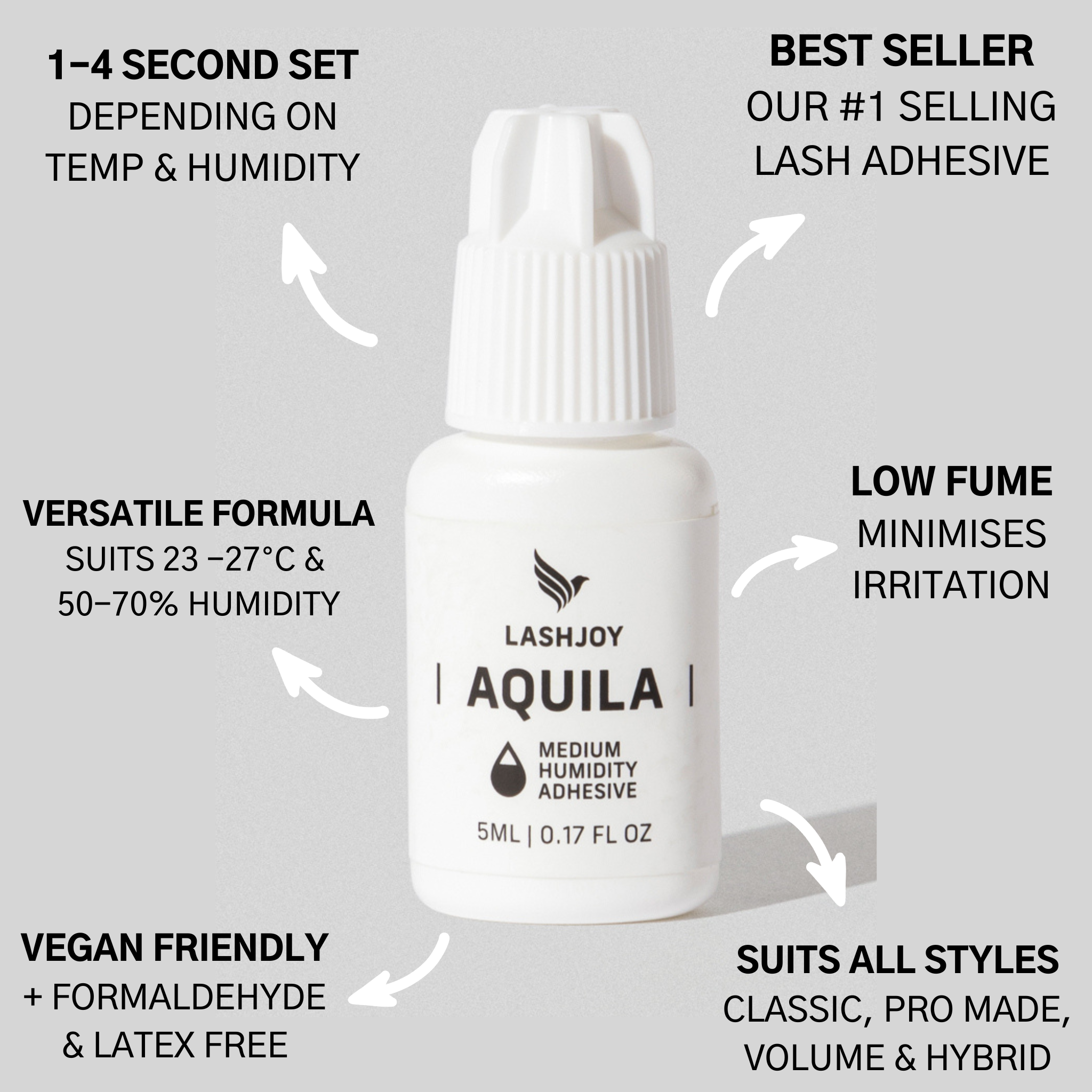 Introducing Aquila Medium Humidity Lash Adhesive—engineered for optimal performance in warmer climates. This adhesive shares the exceptional bond strength and lasting retention of the Aquila Low formula, while offering a more adaptable range for varied temperatures and humidities.
